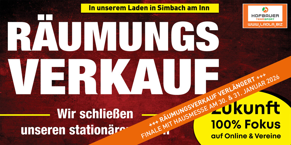 Nach über 27 Jahren schließt unserer stationärer Laden in Simbach "leider" endgültig mit der "Hausmesse für Vereine" – danach gibt es unsere Produkte und unseren Teamsport-Service nur noch online und für Vereine. Wir würden uns sehr freuen, wenn wir euch noch einmal begrüßen dürfen und einen würdigen Abschluss gemeinsam mit euch feiern können.