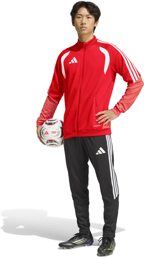 Fußballbegeisterte können hart trainieren und dabei gut aussehen mit der Tiro 26 Competition Trainingsjacke. Diese Trainingsjacke kombiniert funktionale Performance mit modernem Style. Ideal für engagierte Spielerinnen & Spieler, sowohl auf dem Trainingsplatz als auch in der Freizeit. Hergestellt aus mechanischen Stretchmaterialien, bietet es Komfort und Bewegungsfreiheit beim Training. Mesh-Einsätze sorgen für ein angenehm kühles Tragegefühl, während geprägte Designelemente an den Armen und an den Seiten für eine ansprechende Optik sorgen. Der durchgehende Reißverschluss erleichtert das An- und Ausziehen und ist praktisch für das Fußballtraining und die Geselligkeit nach dem Spiel. Die Formotion Technologie hilft bei der Bewegungsfreiheit und ermöglicht natürliche Bewegungen beim Aufwärmen und bei Trainingsübungen. Diese Trainingsjacke ist für Spielerinnen & Spieler gemacht, die es mit dem Fußball ernst meinen. Es verbindet die bewährte adidas Qualität mit funktionalen Details, die Fußballerinnen & Fußballer dabei helfen, ihre volle Leistung abzurufen.