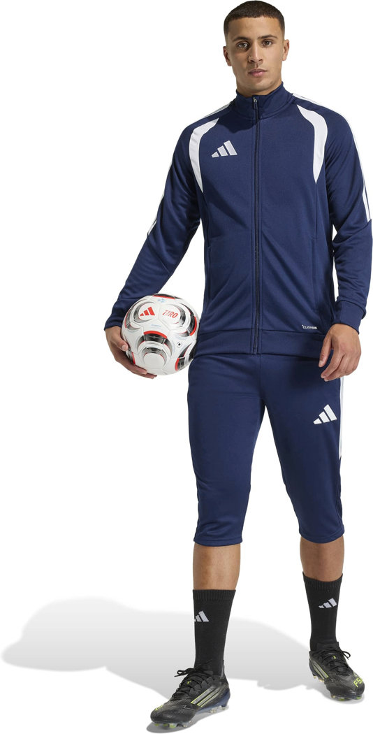 In der Tiro26 League 3/4-Trainingshose wirst du das Spielfeld voller Selbstvertrauen betreten. Diese von Profistyles inspirierte Hose punktet mit einem schnellen und modernen Look, der sich eng um deinen Körper legt und deine Silhouette betont. Sie ist mit der adidas Climacool Technologie ausgestattet. KÜHL. TROCKEN. BEREIT. Climacool leitet Feuchtigkeit von der Haut ab und sorgt für ein kühles und trockenes Tragegefühl – keine Ablenkung, nur Performance. Das Doppelstrickmaterial fühlt sich angenehm weich an und ist dennoch strapazierfähig. Der mittelhohe Bund und die schmale Passform sorgen für Komfort und Bewegungsfreiheit, damit du dich ohne Ablenkung auf dein Spiel konzentrieren kannst. In den Reißverschlusstaschen kannst du deine Essentials sicher verstauen, ohne dass der cleane Look beeinträchtigt wird. Das klassische, aufgestickte adidas Logo und die aufgesetzten 3-Streifen verkörpern die Essenz der Fußballtradition und lassen dich garantiert auffallen. Ob beim Training oder beim Match, diese Hose ist deine erste Wahl, wenn es um Leistung und mühelosen Style geht.