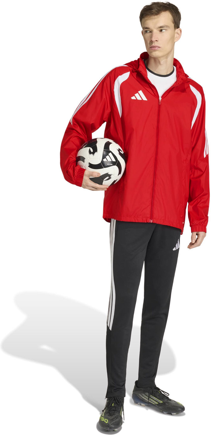 Beim Tiro26 League Windbreaker trifft Tradition auf Innovation. Dieser Windbreaker verkörpert den Spirit des Spiels und bietet einen schnittigen, trendigen Look, der von Elite-Designs inspiriert ist. Das strapazierfähige Ripstop-Material überzeugt mit einer cleanen Silhouette. Die verstaubare Kapuze mit weitenregulierbarem Kordelzug ist vielseitig und bequem, und der durchgehende Reißverschluss vorne bietet Komfort und Style. Das kultige adidas Siebdrucklogo und die aufgesetzten 3-Streifen sorgen für dezente Eleganz. Elastische Bündchen garantieren einen passgenauen Sitz, Brusteinsätze sorgen für einen athletischen Touch, der Mode und Funktionalität vereint. Der Windbreaker wurde für Performance und Komfort entwickelt und ist dein Go-to für den Platz und die Freizeit.