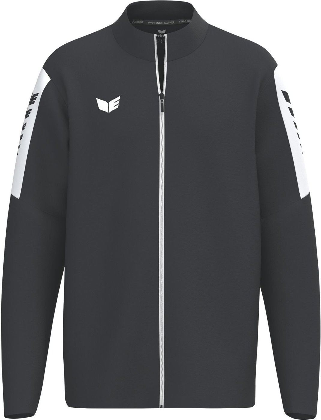 Kontrastfarbener Einsatz mit ERIMA Wings-Druck auf den Ärmeln; Strapazierfähiges Funktionsmaterial; Gestickte ERIMA Schwinge; Gerader Schnitt; Durchgehender Kontrastfarbener Reißverschluss mit Kinnschutz; Seitlich verdeckte Reißverschlusstaschen