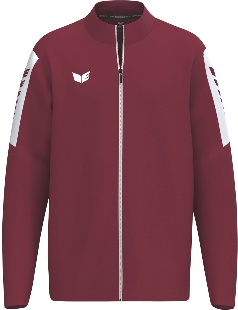 Kontrastfarbener Einsatz mit ERIMA Wings-Druck auf den Ärmeln; Strapazierfähiges Funktionsmaterial; Gestickte ERIMA Schwinge; Gerader Schnitt; Durchgehender Kontrastfarbener Reißverschluss mit Kinnschutz; Seitlich verdeckte Reißverschlusstaschen