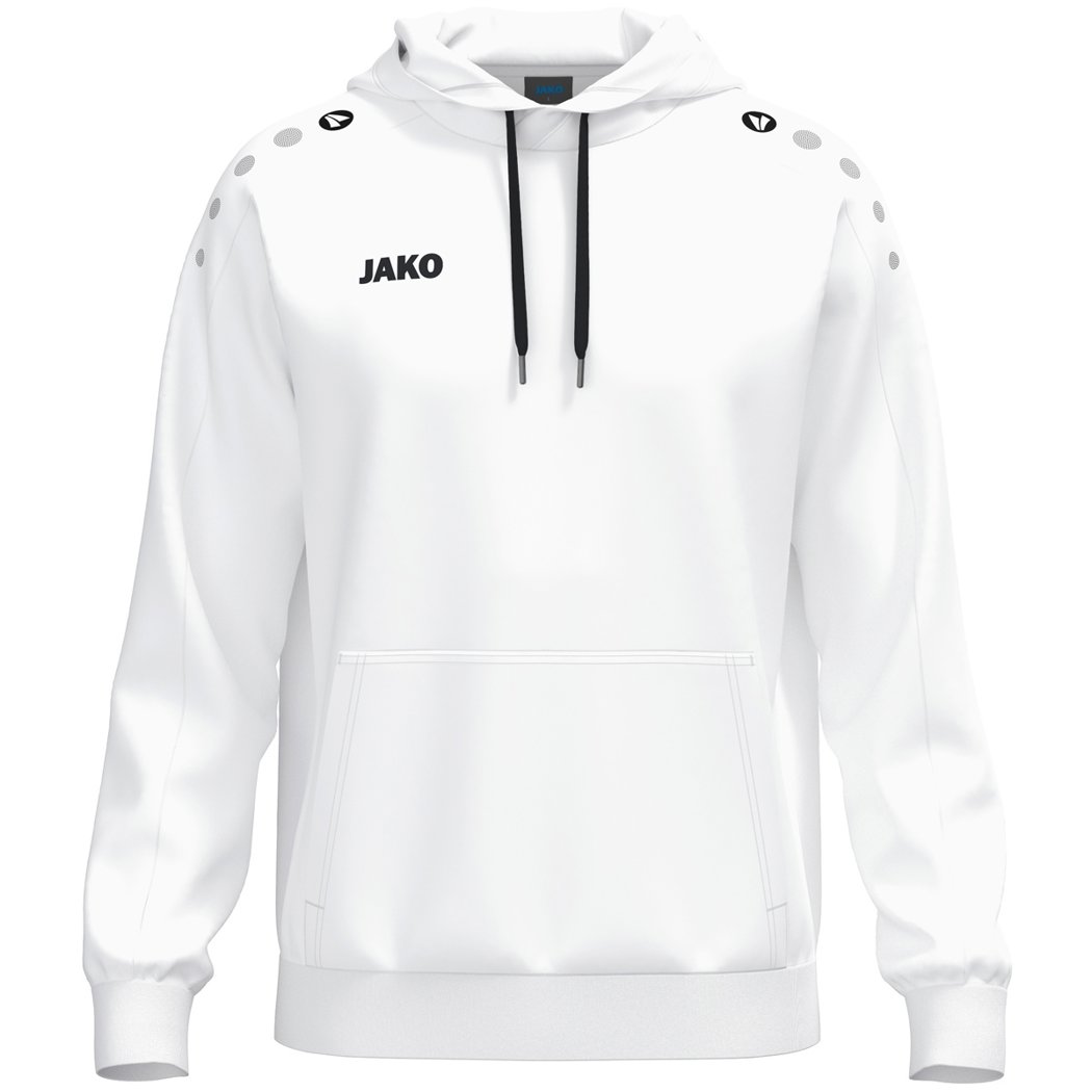 Der Kapuzensweater One überzeugt durch sein klassisches Design und hohen Tragekomfort. Die JAKO Dots auf der Schulter und das JAKO-Logo auf der rechten Brust verleihen dem Hoodie einen sportlich-modernen Look. Die weich angeraute Innenseite sorgt für ein besonders angenehmes Tragegefühl und hält zuverlässig warm – ideal für Freizeit, Aufwärmphasen oder den Alltag. In der aufgesetzten Tasche finden Hände oder kleine Essentials bequem Platz. Dank seines schlichten und hochwertigen Designs ist der Kapuzensweat ideal zum Veredeln, etwa mit Vereinslogo, Initialen oder Firmenbranding. Ob beim Sport, in der Freizeit oder auf dem Weg ins Training – der Kapuzensweat One Cotton vereint Komfort, Funktion und Stil perfekt. Jetzt entdecken und deinen Kapuzensweater One individuell gestalten.