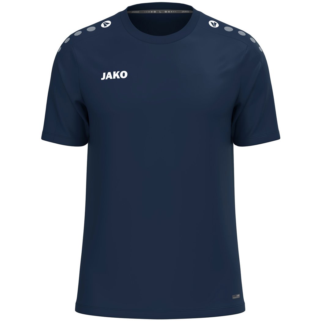 Das Trainingsshirt One überzeugt durch sportliches Design und durchdachte Funktionalität. Die JAKO Dots auf der Schulter verleihen dem Shirt einen dynamischen Look, während das JAKO-Logo auf der rechten Brust den sportlichen Charakter unterstreicht. Mit der Keep Dry-Technologie bleibt dein Körper angenehm trocken – Feuchtigkeit wird effektiv nach außen transportiert, auch bei intensiven Trainingseinheiten. Hergestellt aus recyceltem Polyester, steht das Shirt für Nachhaltigkeit, Atmungsaktivität und Strapazierfähigkeit. Durch sein schlichtes Design eignet sich das T-Shirt ideal zum Veredeln, beispielsweise mit Vereinslogo, Initialen oder Sponsorendruck. Ob beim Training, im Alltag oder als Teamwear – das Trainingsshirt One kombiniert Komfort, Funktion und Stil in Perfektion. Jetzt entdecken und das Trainingsshirt One individuell gestalten.