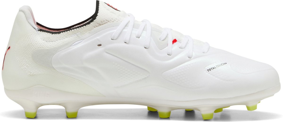 Noch immer zeitlos. Noch immer seiner Zeit voraus. Noch immer KING. Zwanzig Generationen später ist er immer noch unschlagbar, wenn es um Kontrolle, Ballgefühl und Komfort geht. Das TOTALTOUCH+ Obermaterial sorgt für ein Ballgefühl, das gute von großartigen Spielern unterscheidet – sanft am Ball, hart zur Konkurrenz. Die Slip-on-Konstruktion aus Funktions-Strick mit gepolsterter Zunge, OrthoLite® CustomFit Fersenpolsterung und dynamischem Schnürsystem passt sich deinem Fuß an und sorgt vom Anpfiff bis zum Abpfiff für Komfort und sicheren Halt. Mit einer leichten, für feste Böden und Kunstrasen geeigneten Laufsohle für optimale Kontrolle über deine Bewegungen und den Ball. FEATURES + VORTEILEDas Obermaterial der Schuhe besteht zu mindestens 20 % aus recycelten MaterialienTOUCH: Mit dem superweichen TOTALTOUCH+ Obermaterial hast du den Ball noch besser unter KontrolleKONTROLLE: Lasergeschnittene Grip-Zonen und 3D-Texturen sorgen für optimale BallkontrolleKOMFORT: Ortholite® CustomFit Fersenpolsterung passt sich mit der Zeit an deinen Fuß an