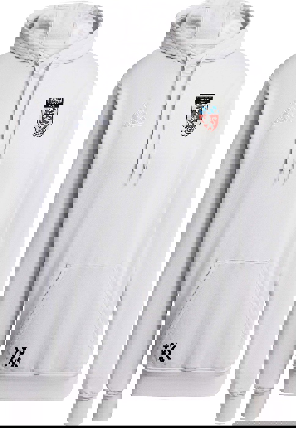 • XX: Initialen oder Nummer (optional rechts unten, auf schwarzen Kapuzensweater weiß, auf grauen Kapuzensweater schwarz) (optional)