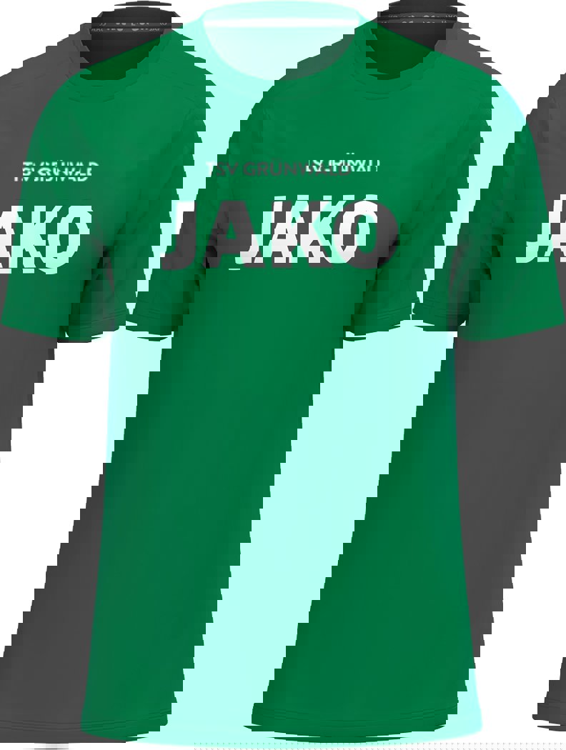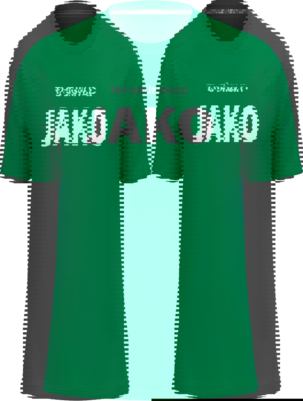 • Vereinsname "TSV GRÜNWALD" (klein vorne über dem Jako Logo, weiß auf den grünem, schwarzen und grauen Trikots, schwarz auf dem weißen Trikot )