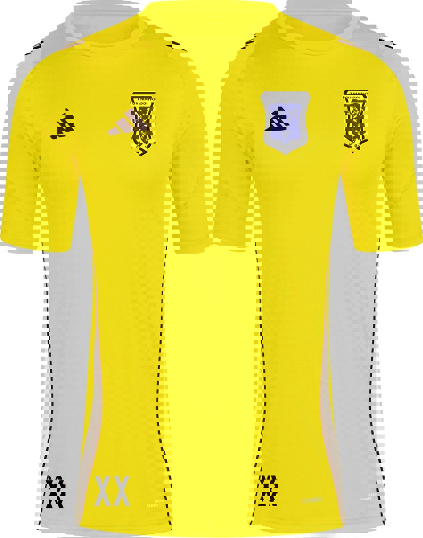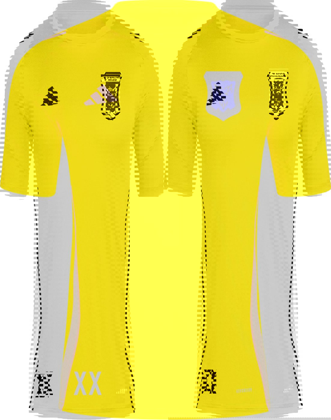 • XX: Initialen oder Nummer (Optional rechts unten, weiß beim schwarzen Trikot und schwarz beim gelben Trikot) (optional)