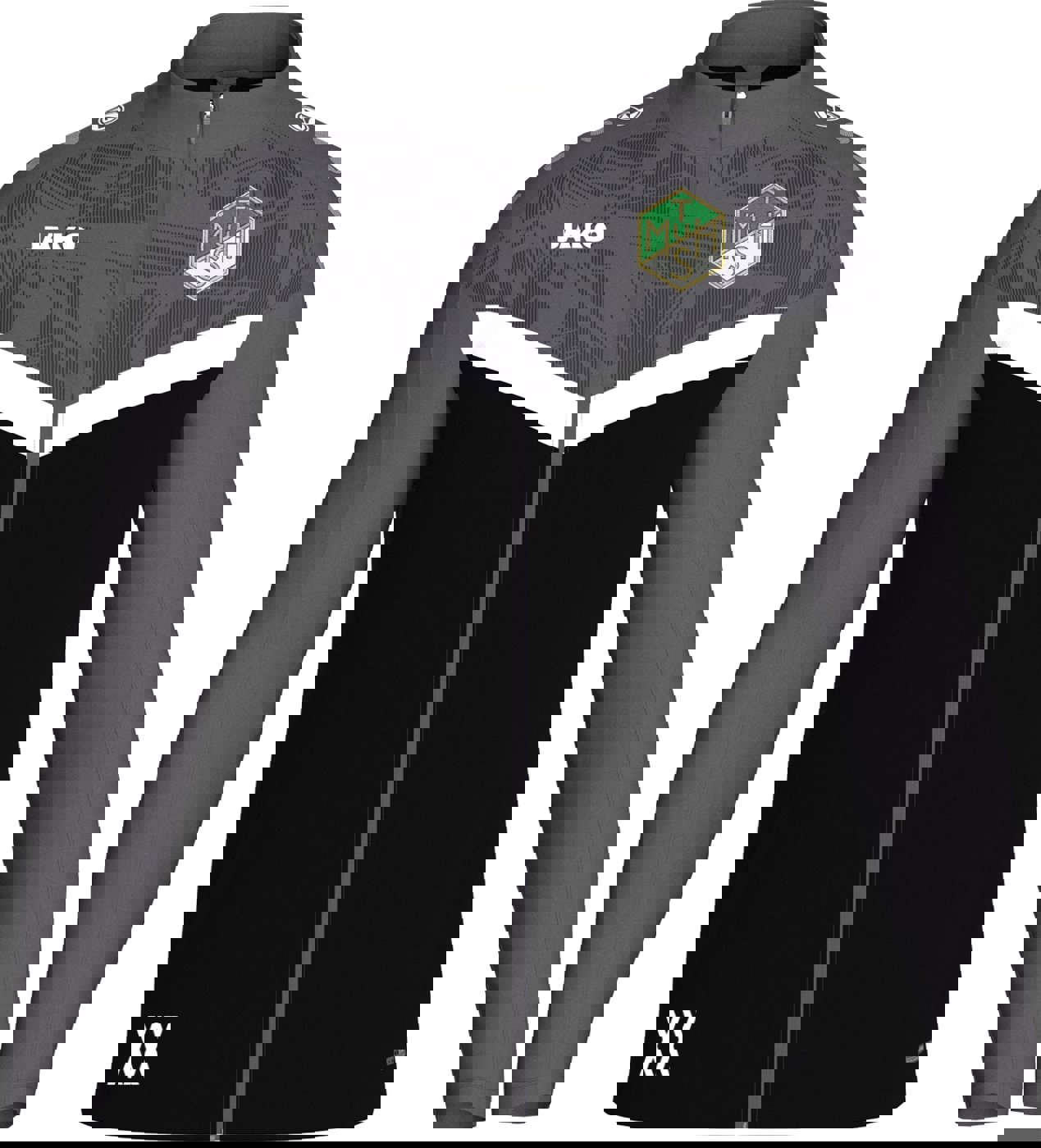 • Vereinswappen ("TSV Moosach-Hartmannshofen" Webeffekt auf linke Brust)