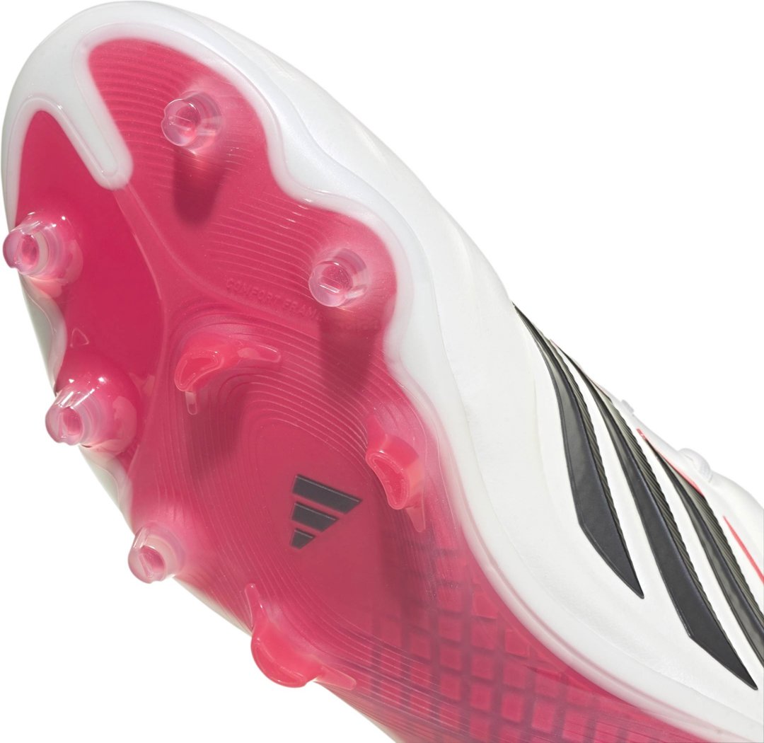 Der COPA PURE IV ELITE Fußballschuh, feste Böden vereint Tradition mit Innovation – für herausragenden Komfort, perfektes Ballgefühl und eine präzise Passform. Die Fusionskin Technologie ermöglicht einen nahtlosen Übergang von Leder zu modernen Materialien und sorgt so für ein weiches Ballgefühl und das einzigartige Gefühl von Leder. Der Comfort Frame kombiniert eine leistungsstarke, leichte Struktur mit einem weichen Pebax-Rahmen und einer stabilen, ultraleichten LX-Basis. Die konischen Stollen und jeweils ein zusätzlicher Stollen an der Seite sorgen für eine bessere Druckverteilung und Grip während der Rotation. Mit einer halbhohen Primeknit-Zungenkonstruktion bietet dieser Fußballschuh Verstellbarkeit, Halt und Komfort. Die anatomische Einlegesohle, die in Zusammenarbeit mit OrthoLite® entwickelt wurde, verfügt über einen offenzelligen Schaumstoff für erhöhte Strapazierfähigkeit und komfortable Einsätze, die den Druck auf die Fußsohle reduzieren. Mit 3D-Haptik-Prints für einen optimierten Ballkontakt und einer für trockenen Naturrasen konzipierten Außensohle gibt dir dieser adidas Fußballschuh sichere Kontrolle auf dem Platz.