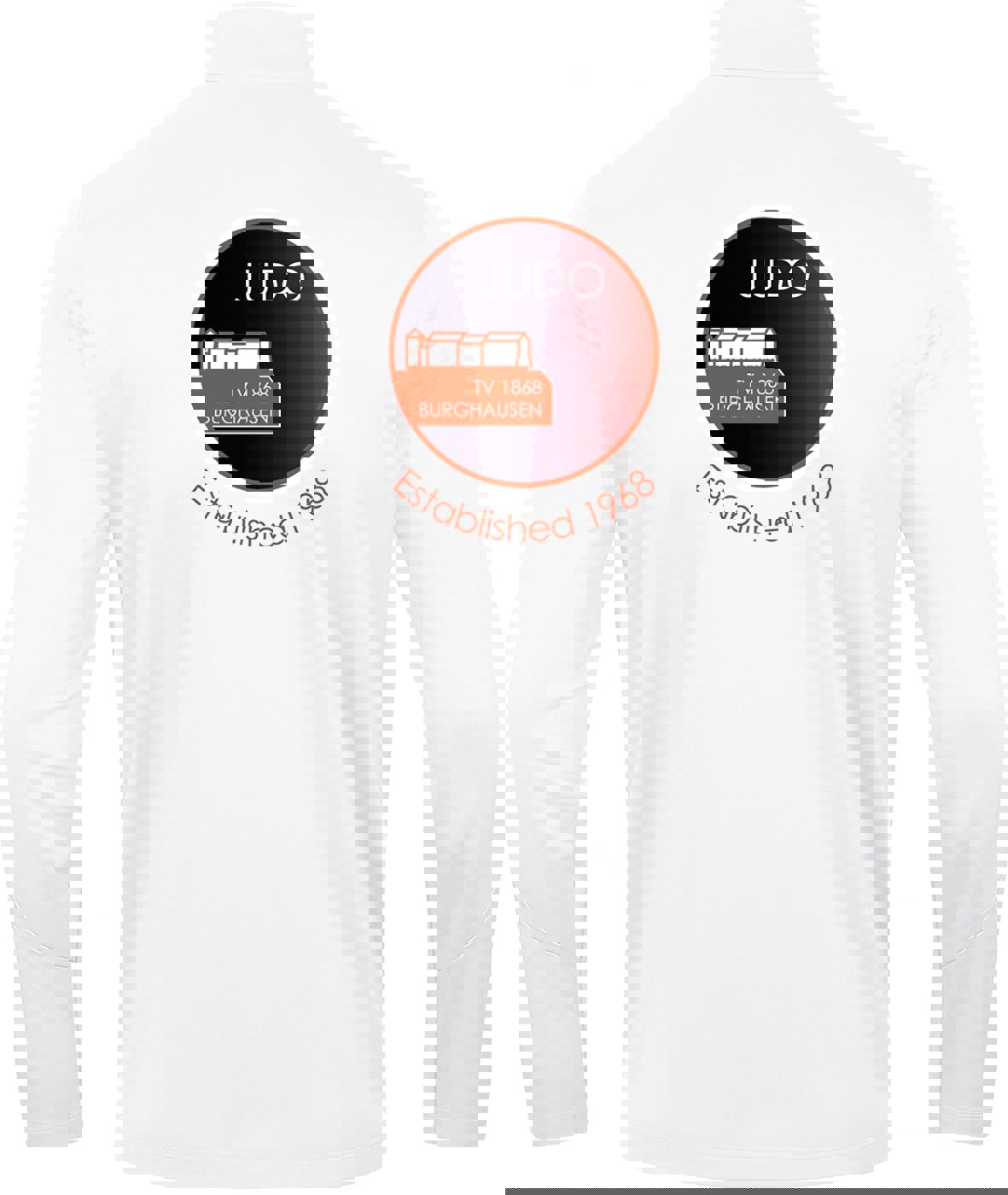 • Abteilungslogo Judo (Digitaldruck am Rücken groß, mehrfarbig mit weißem Konturrand)